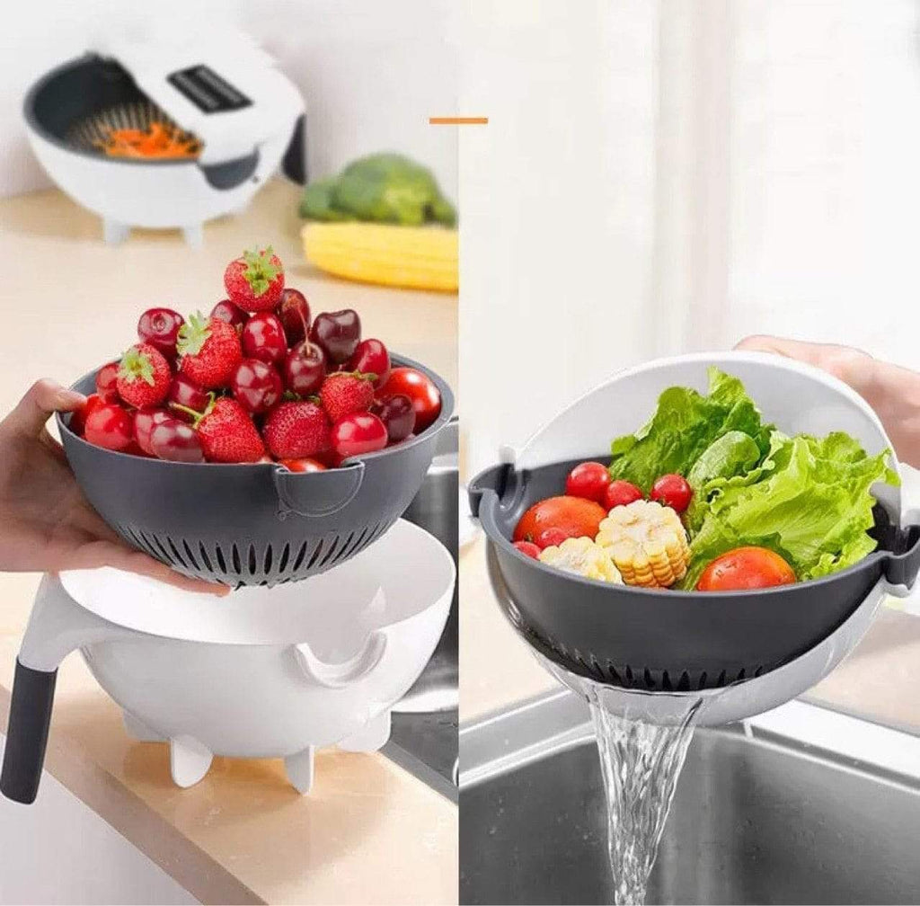 Whether you're a professional chef or a home cook, Slickio™ is essential for making meal prep faster and more enjoyable. It is a multi-purpose vegetable slicer strainer with which you can cut, wash, and drain your fruits/veggies, all in one place.
